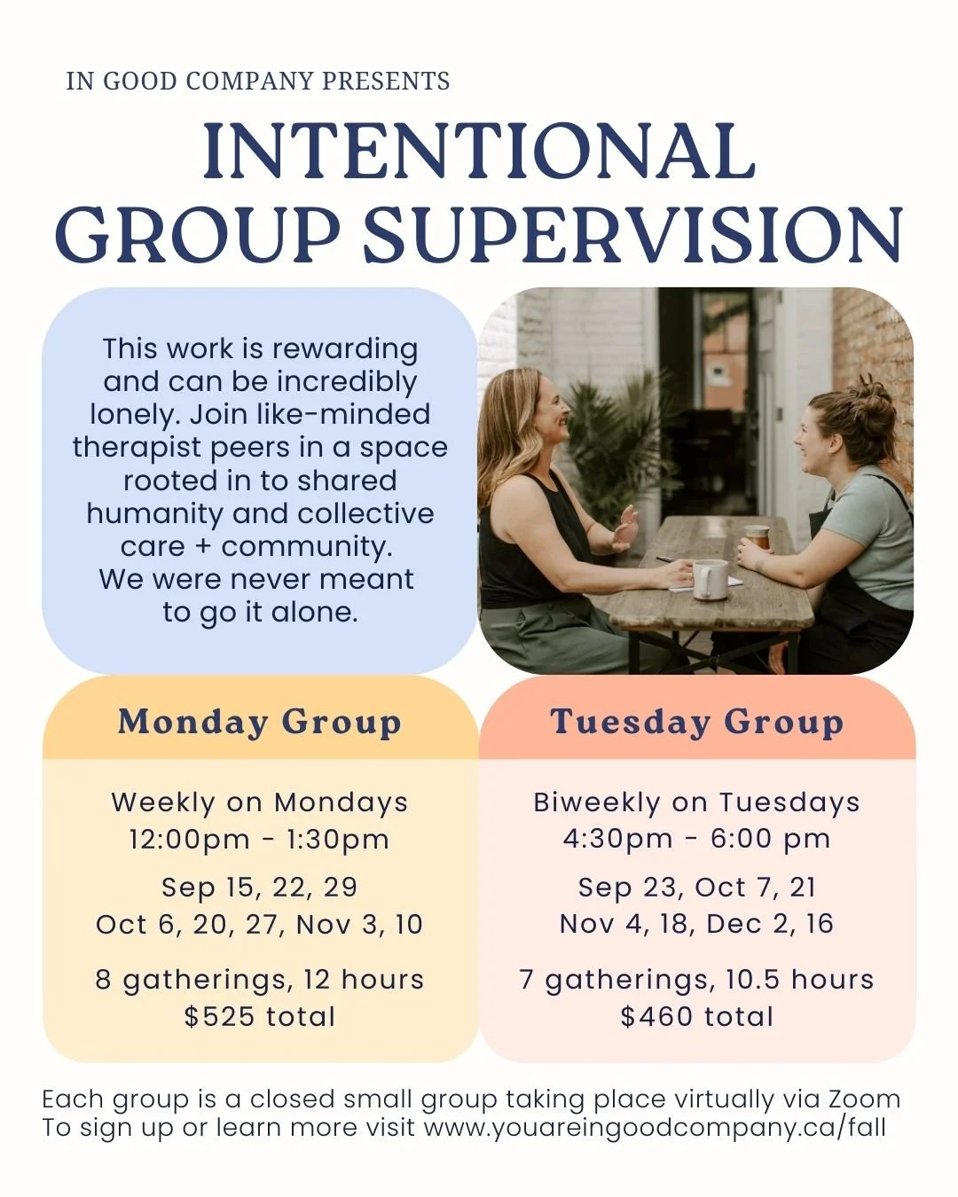Gather with like-minded folks to explore the complexities of being a therapist and experience what it’s like to truly be in good company.