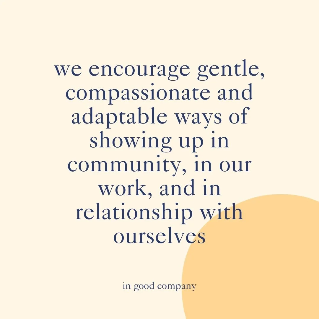 Here at In Good Company we’ll support you in showing up for yourself fully—even when that feels like the hardest thing to do. All of our offerings aim to foster and celebrate reciprocal vulnerability. We hope to create spaces where everyone can feel able to talk openly and honestly about not just the wonderful parts of being a therapist, but the messy, challenging, and complicated parts too.